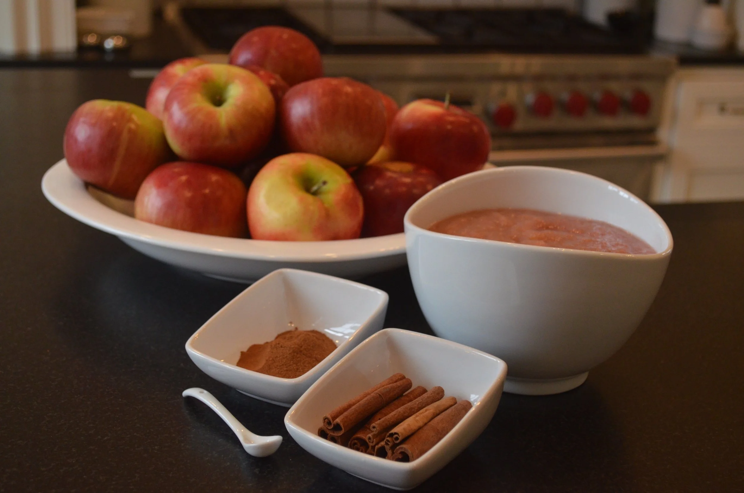 /My Grandma Shirley made the best applesauce. It was a staple for her, and in my home it is as well. I make it each week, and it's one of the very few things we all like. The secret is using Cortland apples, as well as keeping the skin on during cooking. That's what yields the beautiful bright pink hue. I eat this as a snack every day. This makes great baby food (though my kids seem to have survived the jarred food they ate). You'll pass out from how good your home will smell while this is simmering.