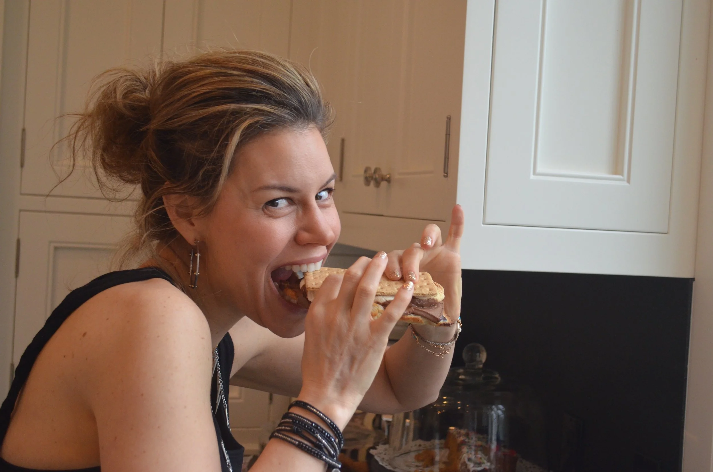 Remove from oven, then smush down with a graham cracker. This looks really pretty on a white platter or cake stand. But seriously, only make this for someone you really love. Despite the simplicity, this is quite a special treat. Anyone crappy isn't deserving of your teffort (translation: time and effort).