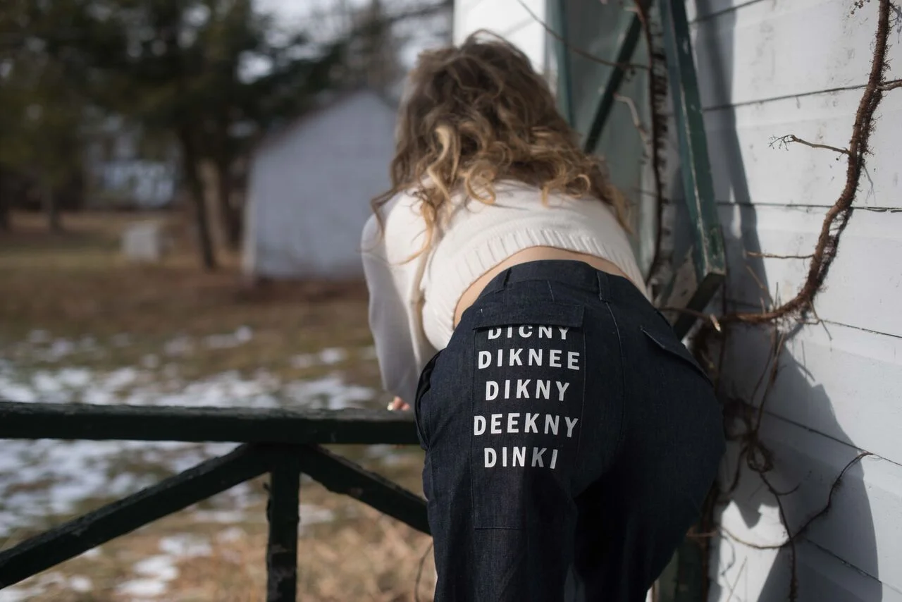 Chery at the flagship in Soho is the best stylist; she really upped my game this season. Fantastic taste. This is a clean, easy, yet well structured look that is endlessly cool and chic in its simplicity. I went wild over the wide scale legs of the jeans. In general I love wide scale fashion. It's way cooler to not have everything be skintight. It actually shows more confidence to not require your clothes to look spray painted on. I loved everything about these pants: the wide contrasting color cuff, the dark wash which had a 50's feel, the high waste, and the cute writing on the tush, which is a clever nod to how people mispronounce DKNY.