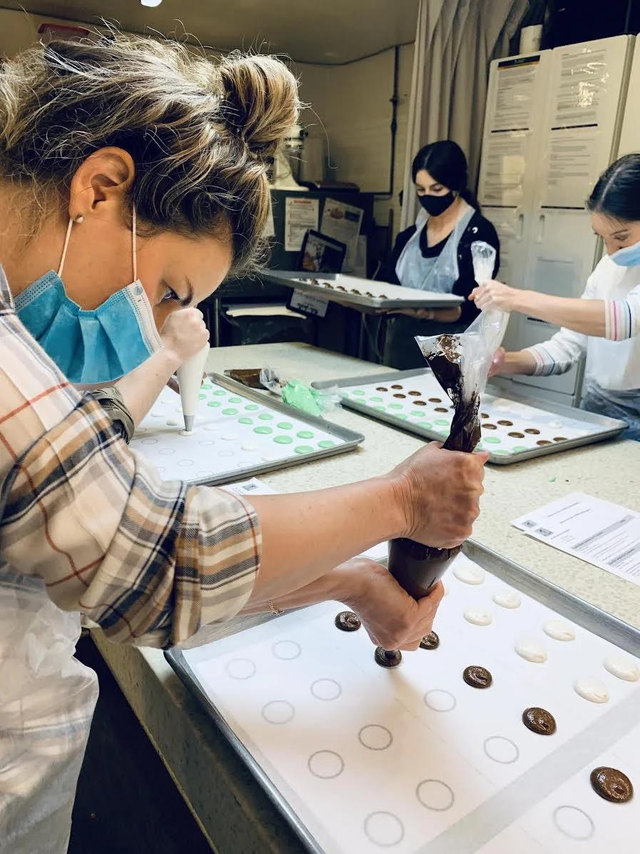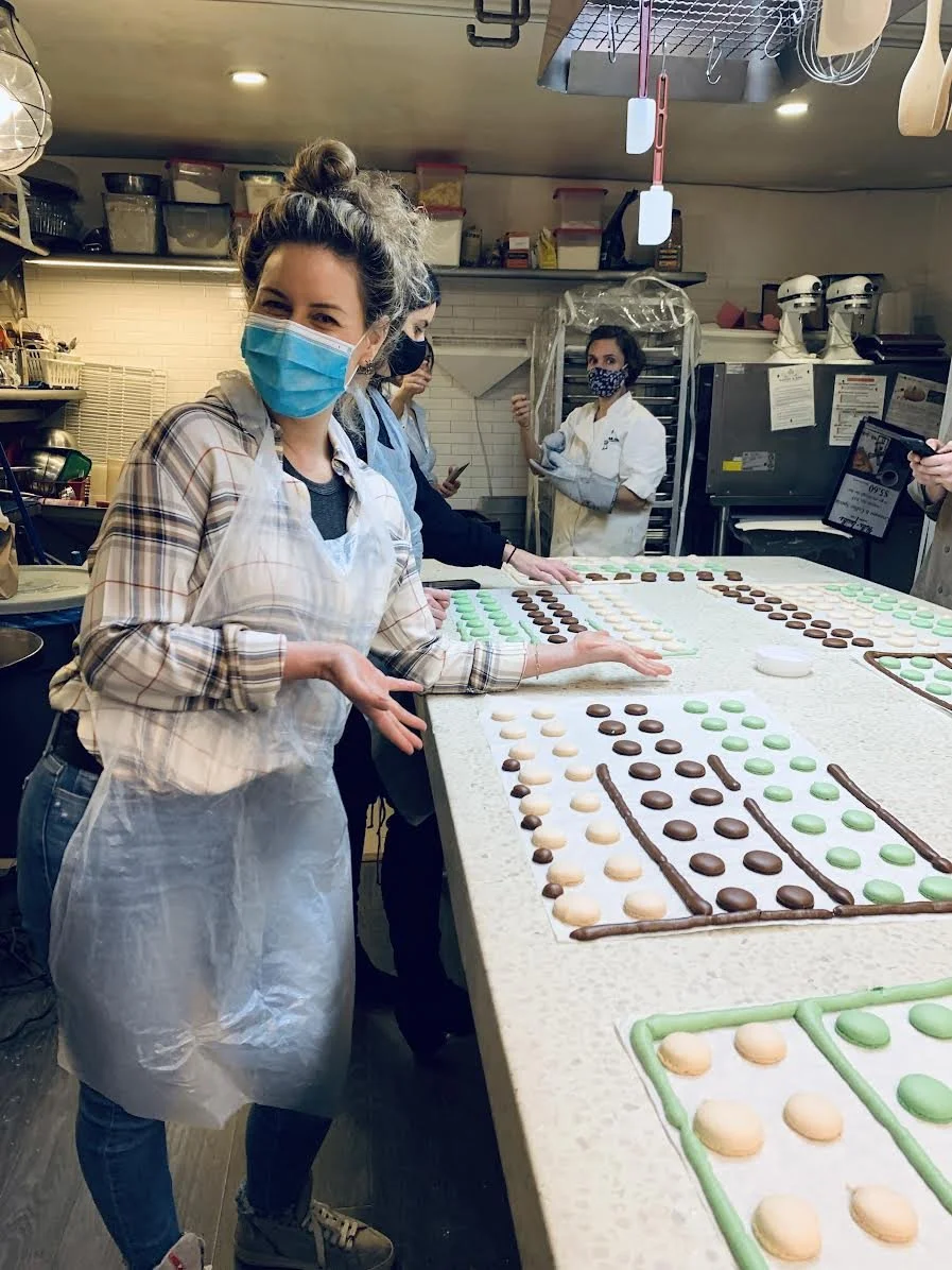 /What fun it was to take this special baking class at Mille Feuille, a classic French pastry shop. My oldest daughter and I had the most wonderful evening learning how to make our favorite treats! Chef Pauline came to New York from France only four years ago and was a terrific teacher. MF has several locations throughout NYC and Brooklyn. It sells delicious breads and pastries, and offers baking classes on bread, croissants, and macarons. The shop sent each pair of participants home with a generous bag of pastries, and we each took home a big box of our macarons, proudly made from scratch. If you’re looking for a fabulous NYC activity, I highly recommend checking out the baking classes at this delightful patisserie. Definitely a scrumptious memory.